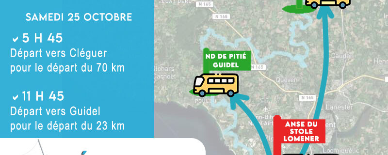 Samedi 25 octobre 2025, l’organisation du Trail Relais des Chapelles 56 met en place des liaisons par car depuis Lomener (lieu d’arrivée des courses) à destination des deux lieux de départ des courses. (La mise en place des coureurs d’une équipe relais le long du parcours n’est pas assurée par l’organisation de course. Elle est …